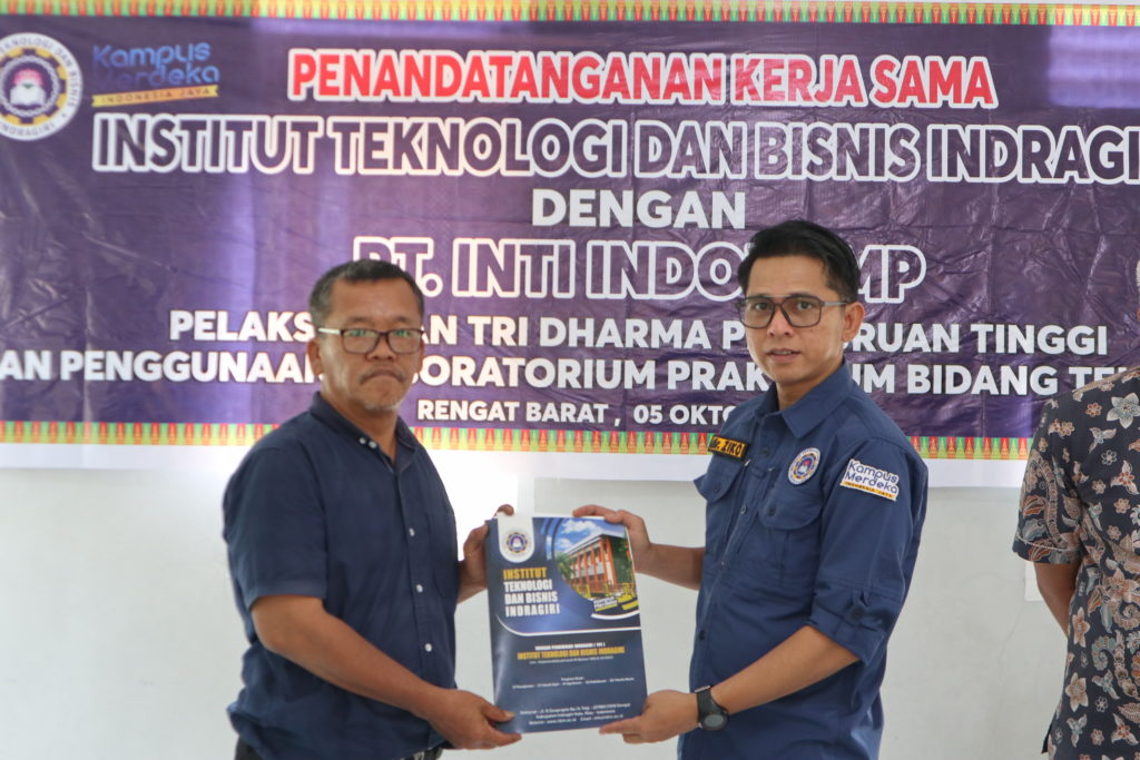 Rengat, 5 Oktober 2023 – Institut Teknologi dan Bisnis (ITB) Indragiri menandatangani nota kesepahaman dengan PT Inti Indokomp dalam rangka pelaksanaan Tri Dharma Perguruan Tinggi, yang mencakup kegiatan pendidikan, penelitian, pengembangan sumber daya manusia, serta pengabdian kepada masyarakat.
